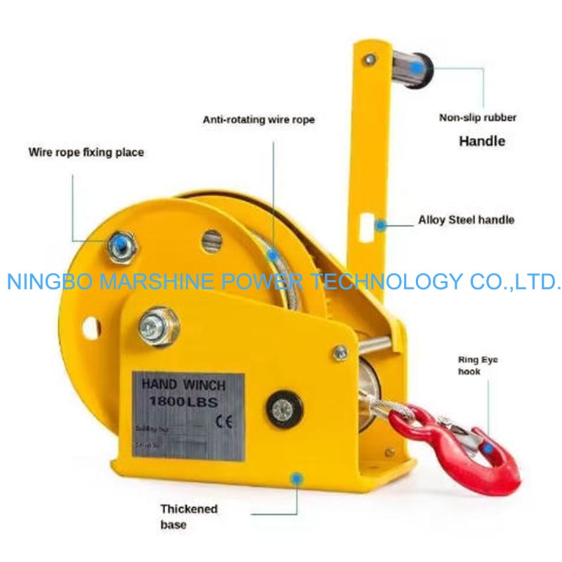Máy kéo cáp tời cầm tay cầm tay Marshine 1800lb hoạt động tốt cho các công trường xây dựng, nơi nó có thể kéo các dụng cụ nhỏ hoặc các vật liệu lên đến giàn giáo. Đôi khi, các chủ sở hữu thuyền sử dụng nó để kéo động cơ hoặc thiết bị lên xe kéo. Nó cũng hữu ích cho các trang trại, có thể giúp nâng các túi thức ăn hoặc đảm bảo các thùng chăn nuôi. Nó cũng hoàn hảo cho các khu vực hẻo lánh mà không có điện, chẳng hạn như các cabin ngoài lưới, nơi nó có thể chuyên chở các nguồn cung cấp.