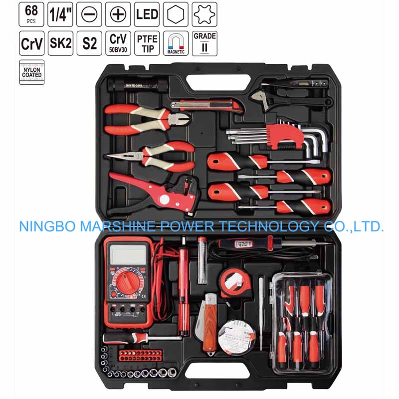 Bộ dụng cụ dụng cụ cầm tay Marshine 68 PCS là một bộ công cụ cấp chuyên nghiệp rất đầy đủ, có thể đáp ứng nhu cầu hàng ngày của thợ điện cũng như kỹ thuật viên và người bảo trì. Nó đi kèm trong một trường hợp mang theo khó khăn với nhiều công cụ cắt, tước, uốn, đo và buộc chất lượng tốt, để người dùng sẽ được trang bị đầy đủ để sửa chữa lắp đặt điện và công việc khắc phục sự cố.