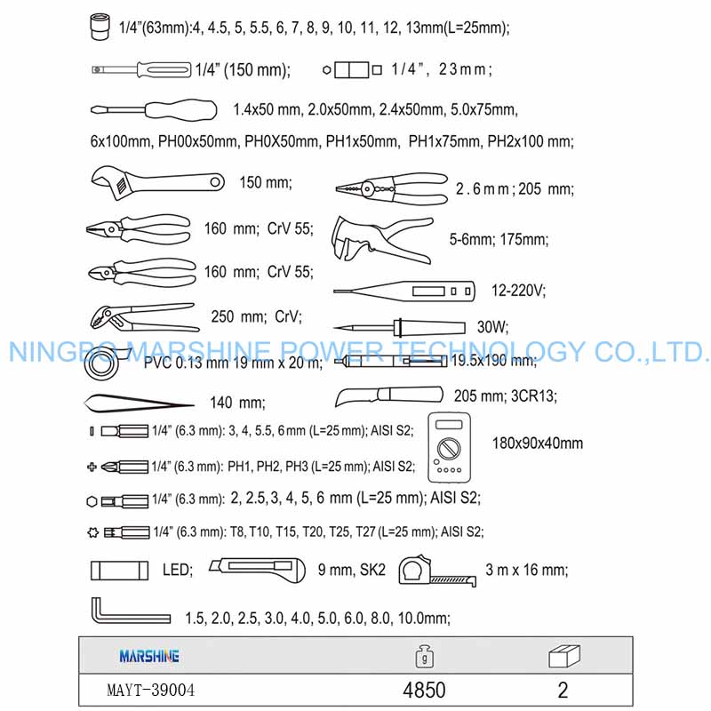 Đảm bảo chất lượng:Khi mỗi ngườiBộ dụng cụ cầm tay Marshine 68 PCSnằm trong quy trình dây chuyền sản xuất, mỗi thành phần sẽ được kiểm tra nghiêm ngặt bởi nhà điều hành, điều này có thể đảm bảo hiệu quả sự an toàn, hiệu suất và độ tin cậy của từng công cụ.