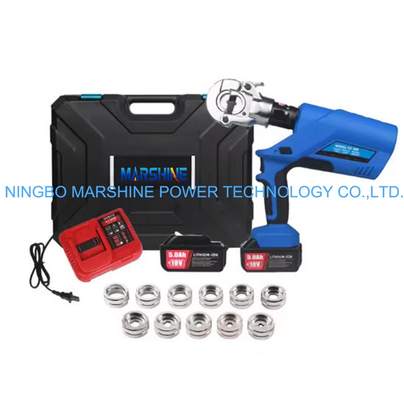 Máy uốn thủy lực dùng pin MARSHINE EZ-300 có thể tạo ra lực đầu ra 60 kN, có thể thực hiện việc uốn ổn định và ổn định trên các loại cáp có đường kính lớn. Hành trình gấp mép 17 mm của nó cho phép đóng hoàn toàn khuôn để đảm bảo tiếp xúc an toàn với đầu nối. Công cụ này phù hợp với các dây dẫn từ 16 mm2 đến 300 mm2, có thể mang lại sự linh hoạt để phù hợp với các kích cỡ cáp khác nhau. Và dụng cụ uốn thủy lực được cung cấp năng lượng bởi pin lithium-ion 18V, đồng thời trang bị bộ pin 5.0Ah có thể kéo dài thời gian làm việc tại hiện trường.