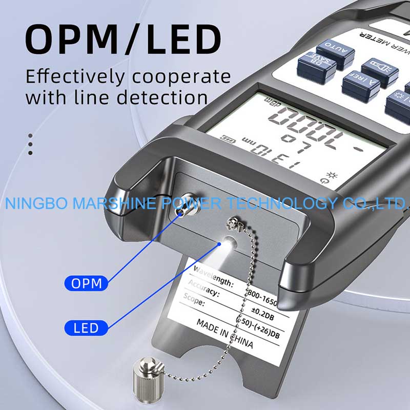Công cụ khắc phục sự cố sợi quang MARSHINE của chúng tôi Máy đo công suất OPM (OPM Test) là thiết bị kiểm tra hiệu suất cao được áp dụng để đo mức công suất của tín hiệu quang trong hệ thống cáp quang. Nó cung cấp các kết quả đáng tin cậy và chính xác, có thể được các kỹ thuật viên sử dụng hiệu quả trong việc xác minh cường độ tín hiệu, cách ly lỗi và đánh giá hiệu suất của hệ thống cáp quang. Kích thước nhỏ và hoạt động đơn giản giúp nó phù hợp với công việc hiện trường, kỹ sư mạng, nhân viên bảo trì trong môi trường viễn thông, trung tâm dữ liệu và hệ thống CATV.