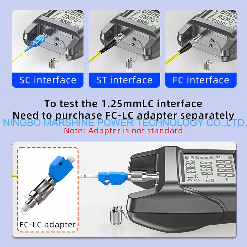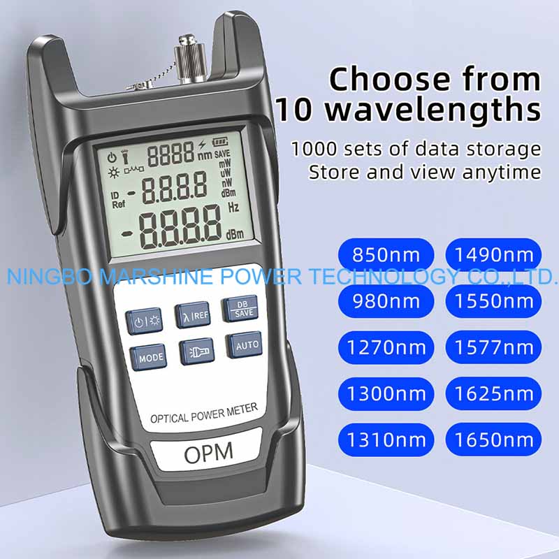Bộ kiểm tra OPM của Công cụ khắc phục sự cố sợi quang MARSHINE có thể được sử dụng để kiểm tra ở tất cả các bước sóng quang tiêu chuẩn của mạng cáp quang (ví dụ: 850nm, 1310nm, 1490nm và 1550nm), áp dụng cho cả đa chế độ và chế độ đơn.