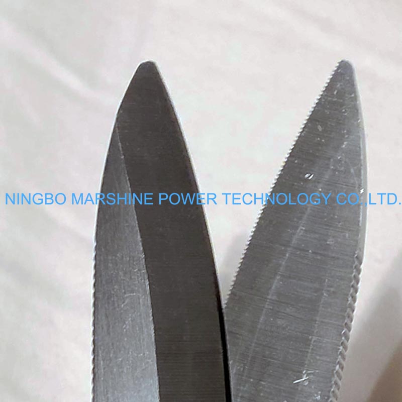 Các cạnh có răng cưa giữ các vật liệu trơn hoặc cứng, chẳng hạn như sợi cường độ Kevlar, để chống trượt và tạo ra các vết cắt rõ ràng và chính xác.